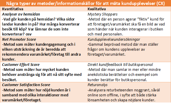 Vad som blivit tydligare i takt med digitaliseringens framväxt är att mängden tillgänglig data ökat och att antalet källor/kanaler där man kan mäta vad kunden faktiskt gör har blivit fler. Det innebär att retailers bör utforma system och processer som tar reda på både vad kunden gör och vad kunden tycker. Hur enkelt eller sofistikerat man väljer att göra detta bör varje retailer själv förstås överväga. Nedan följer dock exempel på några metoder man kan jobba med och som ger både kvantitativa mättal och kvalitativ input till arbetet: